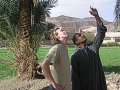 One day we were in a kind of village somewhere around Cairo, driving on in a non existing road. We stopped in the middle of a crossroad whit our windows dawn to take some pictures. Children gathered immediately around us. What can be more curious than two visitors in a strange vehicle? Aliens, maybe? And that is exactly how I felt. A child grabbed me for my hair to find out if they feel the same between the fingers as black hair do. The difference between me and the Egyptians was fading, at least in me. I wrapped up in my "shal" (a Bedouin scarf) put on my sun glasses and from far everybody would say I was one of them, but whit good shoes. And from a meter of distance I would look as a simple person. But in the Valley of the Kings I turned tourist again, of course, and where I did not have the entrance ticket in my hand I was discreetly handing over couple pounds each time to the guardian and than "Shukran!" (thanks), followed by: "Lets have a look at anther tomb!" Yes, you have to help people, shake hands, smile to them, kindly talk whit sounds to them, have a tea, and than my friend,… there is another dune behind this one! Ma'a salama and a deep sigh for those that are not here now. (entered by Peter)